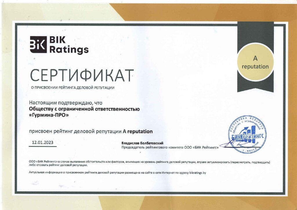 В январе 2023 года Рейтинговое агентство BIK Ratings присвоило рейтинг деловой репутации ООО «Гурмина-ПРО» на уровне A reputation, который характеризует деловую репутацию уровня выше среднего. В апреле 2025 г. данный рейтинг был подтвержден.