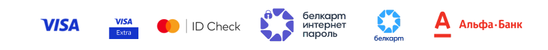 Возможны платежи по следующим банковским картам: Visa, Visa Electron, MasterCard, Maestro, Белкарт.